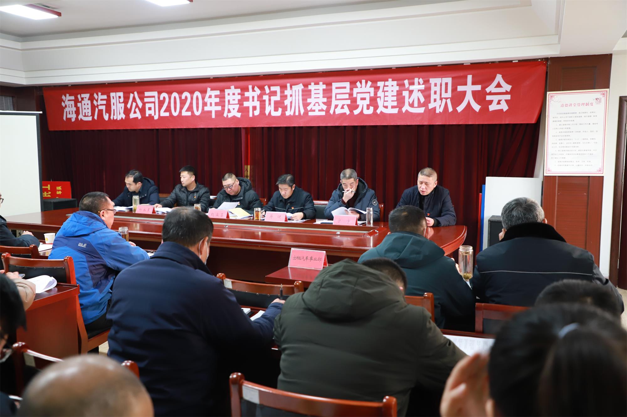1月6日下午,汽服公司召開2020年度書記抓基層黨建述職評(píng)議大會(huì)。公司黨委領(lǐng)導(dǎo)班子成員、公司各處室負(fù)責(zé)人、各事業(yè)部領(lǐng)導(dǎo)班子成員以及部分黨員代表、職工代表,共計(jì)43人參加會(huì)議。會(huì)議由汽服公司黨委委員、副總經(jīng)理蔣健主持。