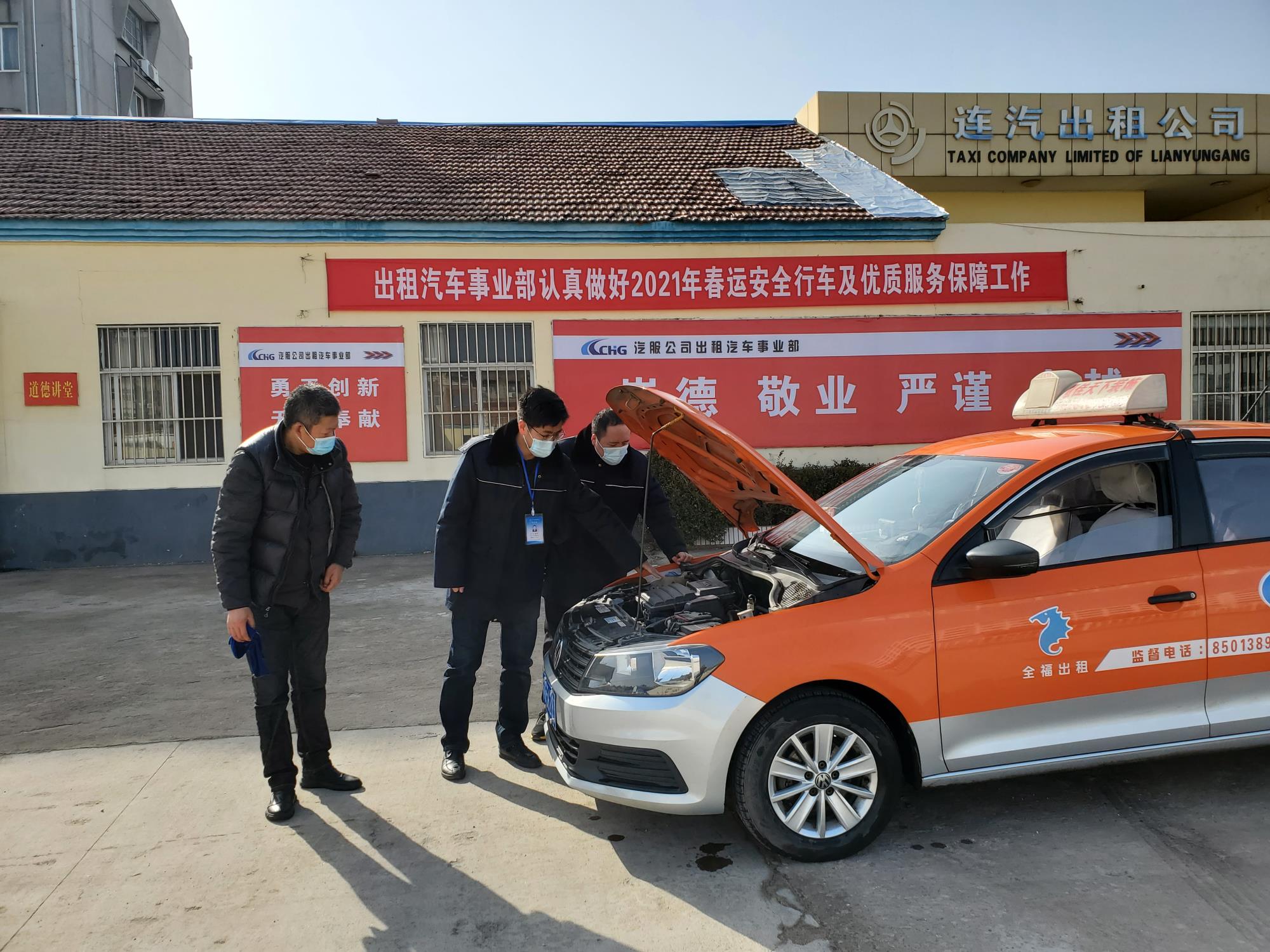 為全力做好2021年春運(yùn)期間巡游出租汽車安全運(yùn)營(yíng)及優(yōu)質(zhì)服務(wù)保障工作,為廣大市民和返鄉(xiāng)人員的出行提供一個(gè)安全、便捷、溫馨的乘車環(huán)境,汽服出租汽車事業(yè)部緊密結(jié)合春運(yùn)工作要求,加強(qiáng)所屬全福公司、連汽公司出租車的管控,1月28日春運(yùn)首日,出租汽車事業(yè)部領(lǐng)導(dǎo)班子成員帶領(lǐng)安全員分四組到高鐵站、汽車總站、蘇欣站、南站等重點(diǎn)場(chǎng)所,面對(duì)面地對(duì)廣大巡游出租岀租汽車駕駛員就如何做好安全行車、疫情防控、規(guī)范運(yùn)營(yíng)、文明服務(wù)等方面宣傳教育引導(dǎo)工作。