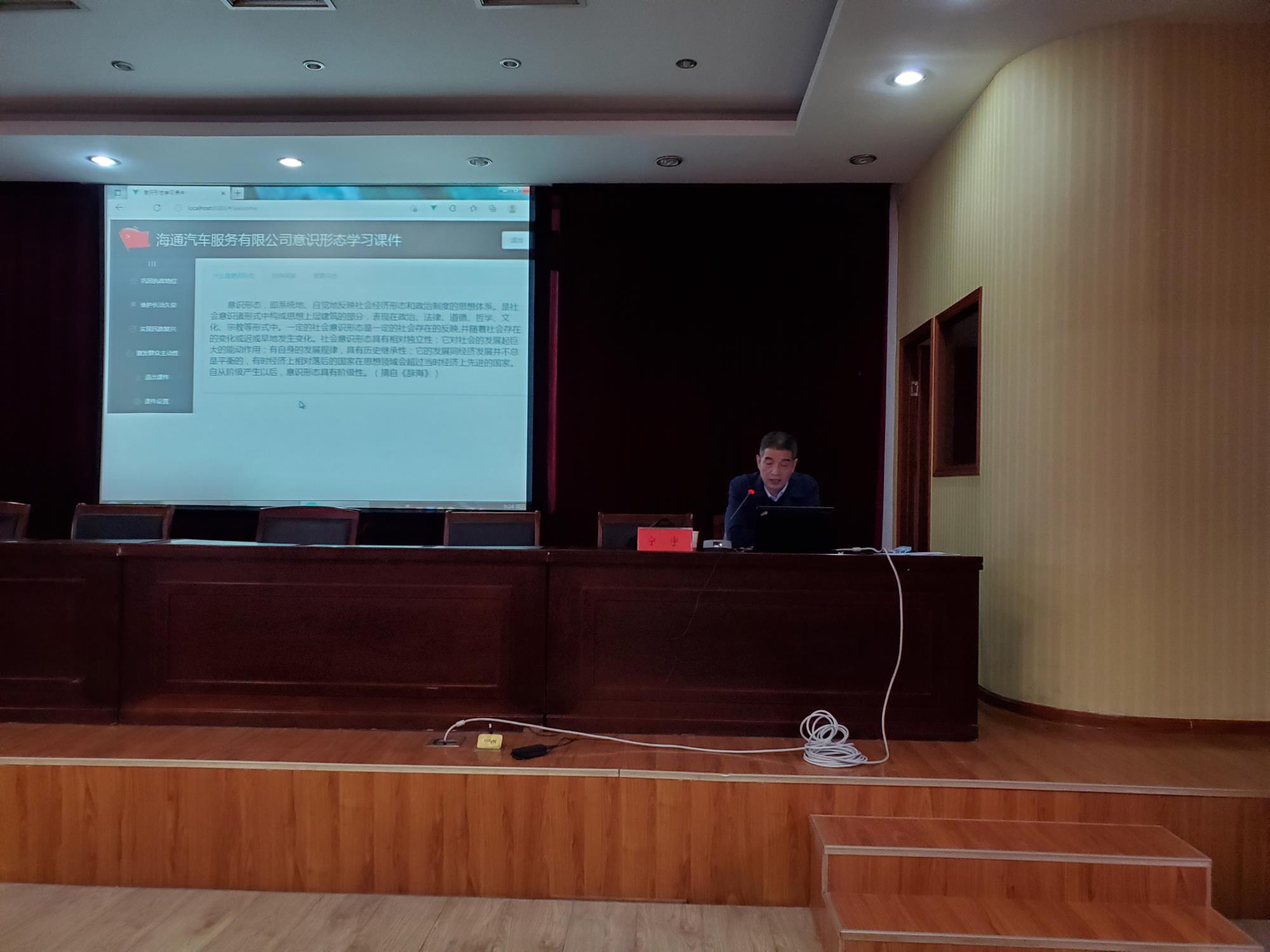 為進一步加強和改進意識形態(tài)工作,落實黨管意識形態(tài)原則,11月5日上午,汽服公司召開意識形態(tài)工作專題黨課。公司領導班子成員、全體黨員干部及積極分子共80余人參加會議。
