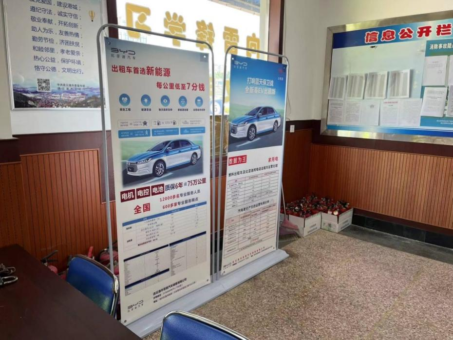 此次推廣宣傳,蒼梧銷售公司專門制作了比亞迪新能源出租車宣傳展架擺放至各出租車公司服務(wù)大廳的顯著位置。展架頁面上除了宣傳推廣政府補(bǔ)貼政策外,還介紹了比亞迪新能源汽車的構(gòu)造、性能等內(nèi)容。