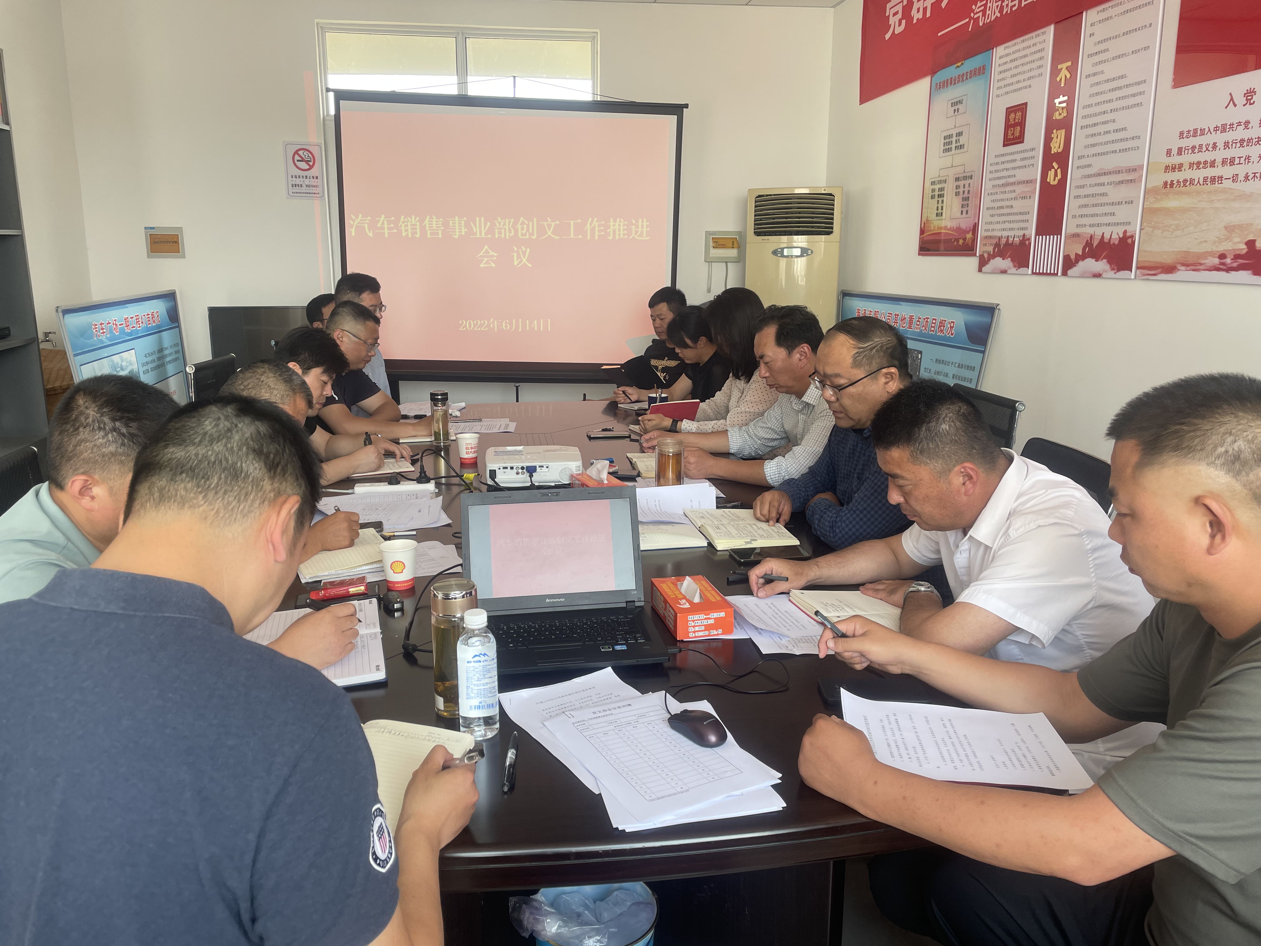 6月14日下午,汽車銷售事業(yè)部于公司會(huì)議室召開創(chuàng)建文明典范城市工作推進(jìn)會(huì)議。事業(yè)部領(lǐng)導(dǎo)班子成員、基層主管10余人參加會(huì)議,會(huì)議由經(jīng)理欒文忠主持。
