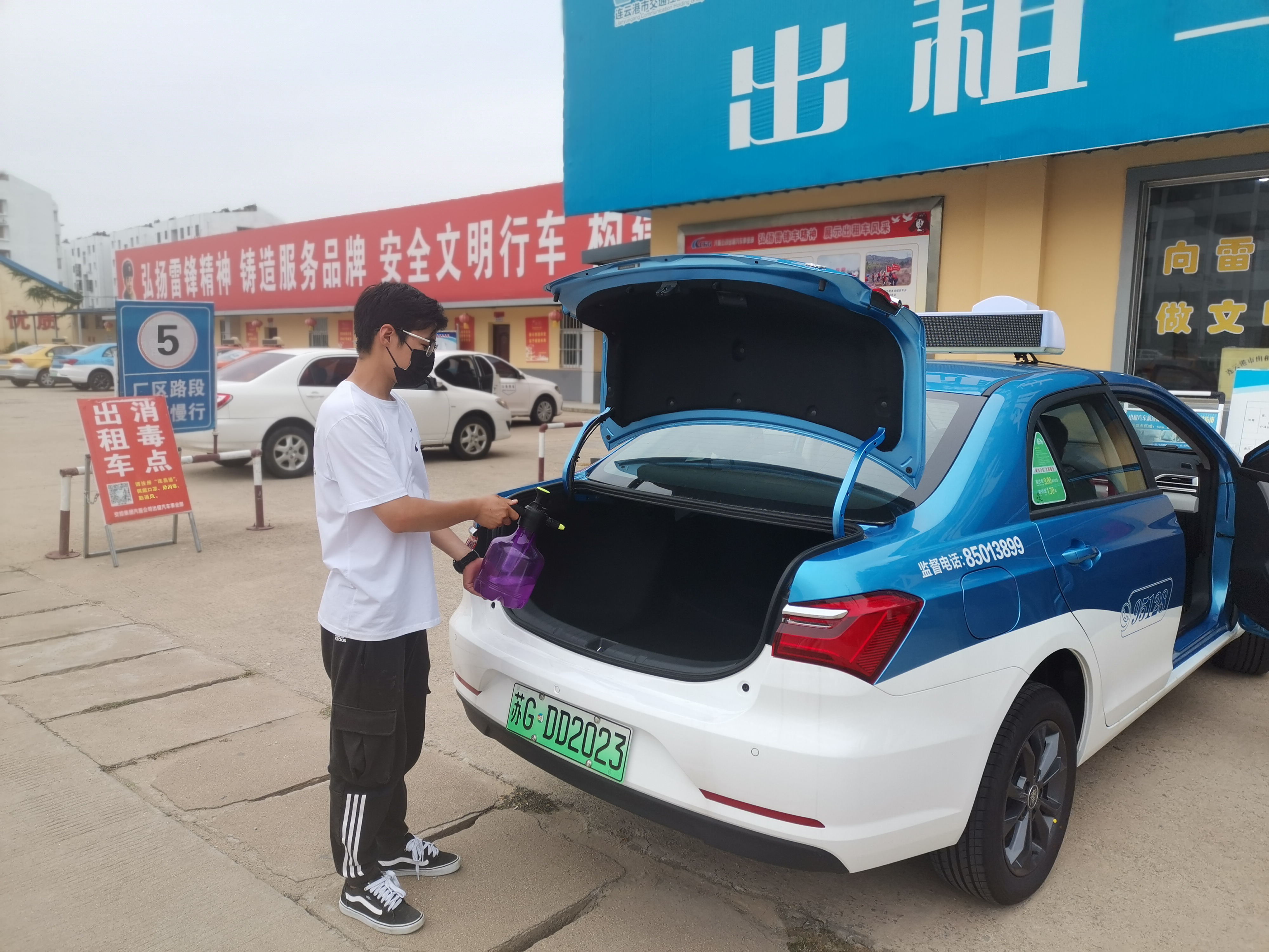 車輛消殺到位。發(fā)放噴壺、消毒劑、醫(yī)用口罩等防控物品給每位駕駛員。在高鐵站、院內(nèi)、墟溝分公司、座位套保潔中心設(shè)置四個出租車消殺站點對出租車進行免費消毒。