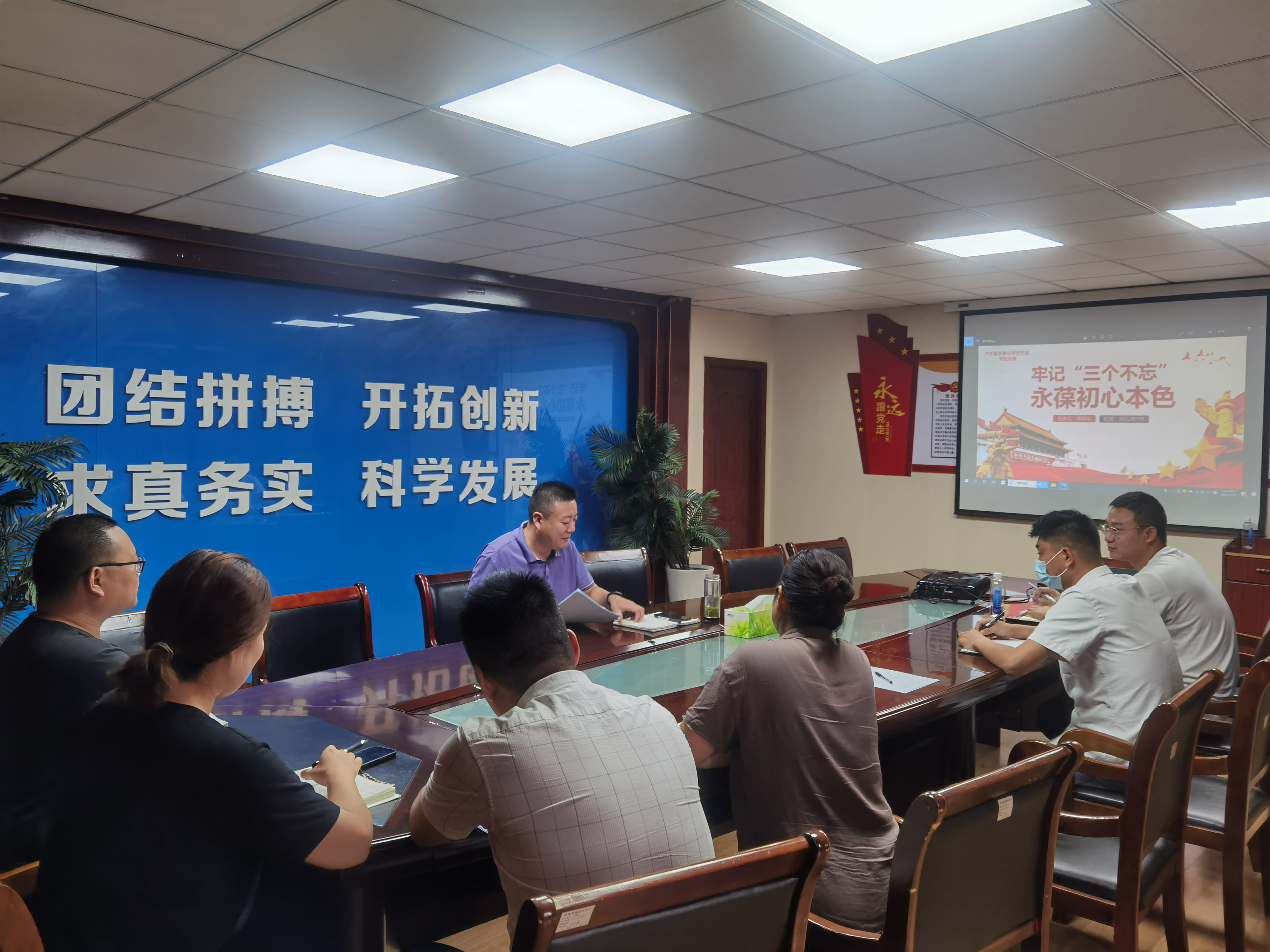 課上,支部書記蘇保華以“牢記“三個(gè)不忘”永葆初心本色 迎接二十大勝利召開”為主題,號(hào)召支部全體黨員牢記“三個(gè)不忘”:一是永葆初心本色,堅(jiān)決不能忘了我們是人民的勤務(wù)員,是時(shí)代的答卷人 ;二是永葆初心本色,堅(jiān)決不能忘了我們是在歷史的傳承接力中走來;三是永葆初心本色,堅(jiān)決不能忘了我們是為了什么出發(fā)的信仰。蘇保華還要求廣大黨員同志,要結(jié)合當(dāng)前港城疫情的嚴(yán)峻形勢(shì),在志愿服務(wù)、應(yīng)急保障等方面提高思想認(rèn)識(shí),切實(shí)發(fā)揮租賃黨支部的戰(zhàn)斗堡壘作用和黨員先鋒模范作用。