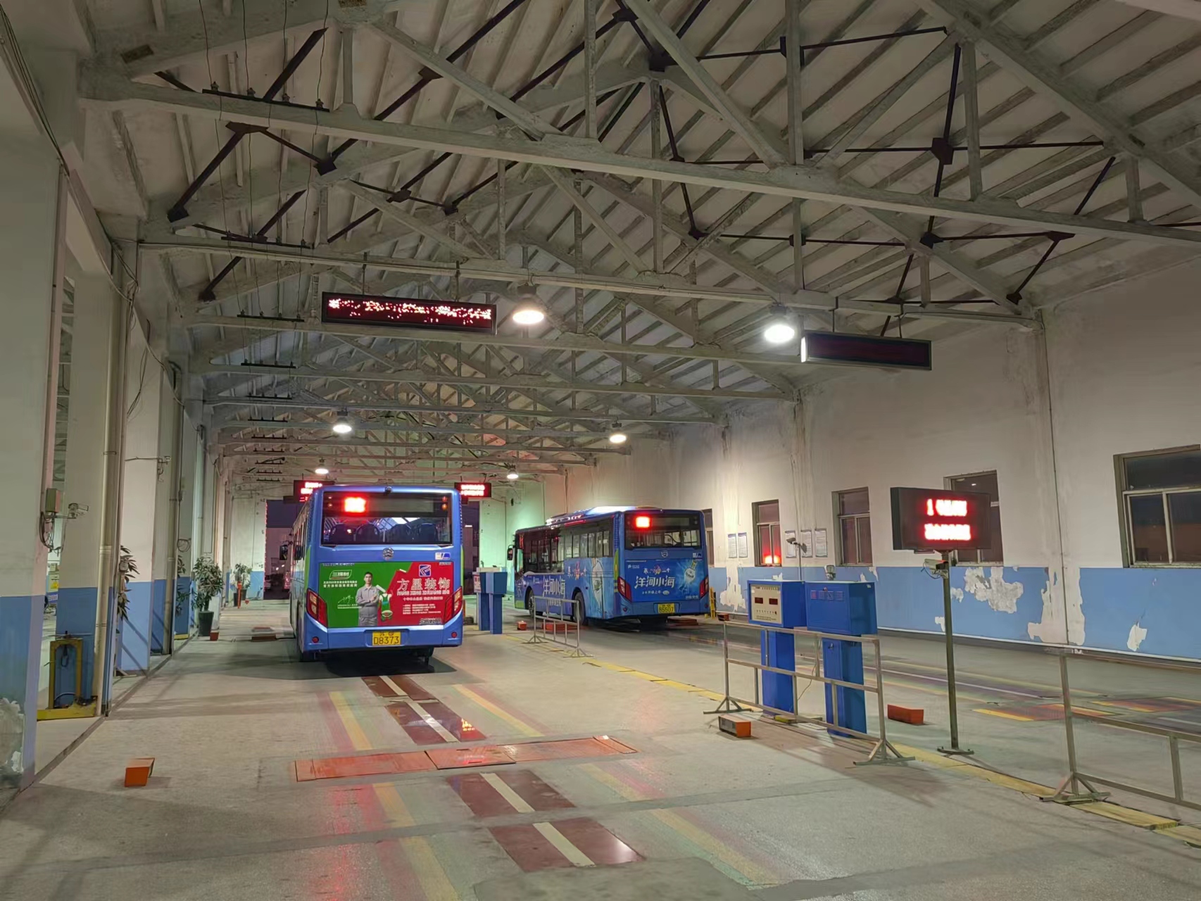 還未走進(jìn)檢測(cè)車間,就能聽到底盤檢測(cè)員拿著手錘對(duì)公交車底盤的敲擊聲,底盤檢查員對(duì)引車員發(fā)出的操作指令聲。下午6點(diǎn)半,外面已經(jīng)漆黑一片,但是檢測(cè)車間卻燈火通明,一輛輛公交車整齊的排著隊(duì),登錄員、外檢員、引車員、底盤檢測(cè)員、調(diào)度員、報(bào)告簽發(fā)人員就像流水線一般層層把關(guān),一輛輛公交車順利的完成了車輛檢測(cè)任務(wù),對(duì)于不合格的車輛,引車員及時(shí)的用對(duì)講機(jī)向大廳報(bào)告著,讓公交車機(jī)務(wù)維修人員及時(shí)的修復(fù)問(wèn)題。