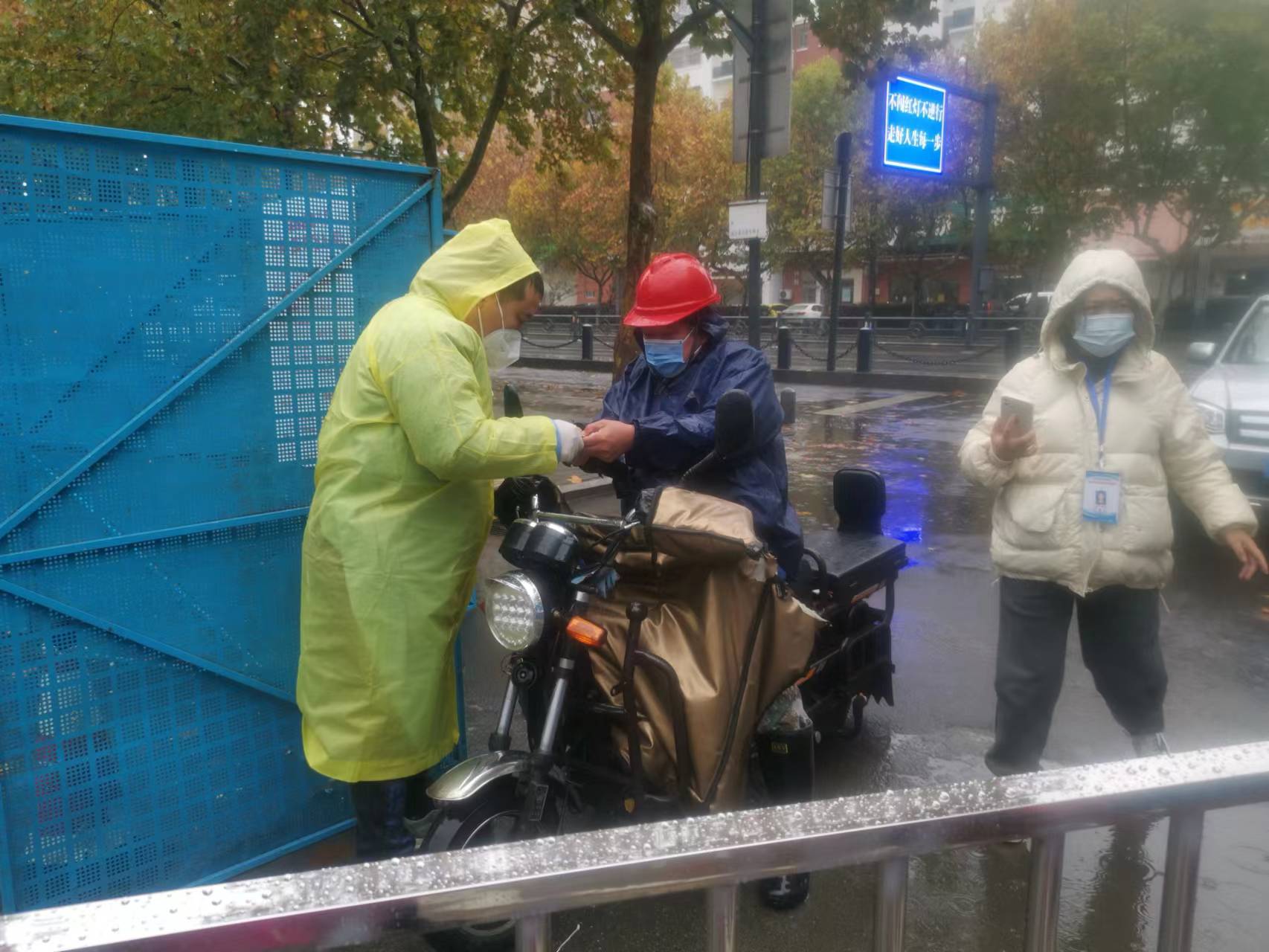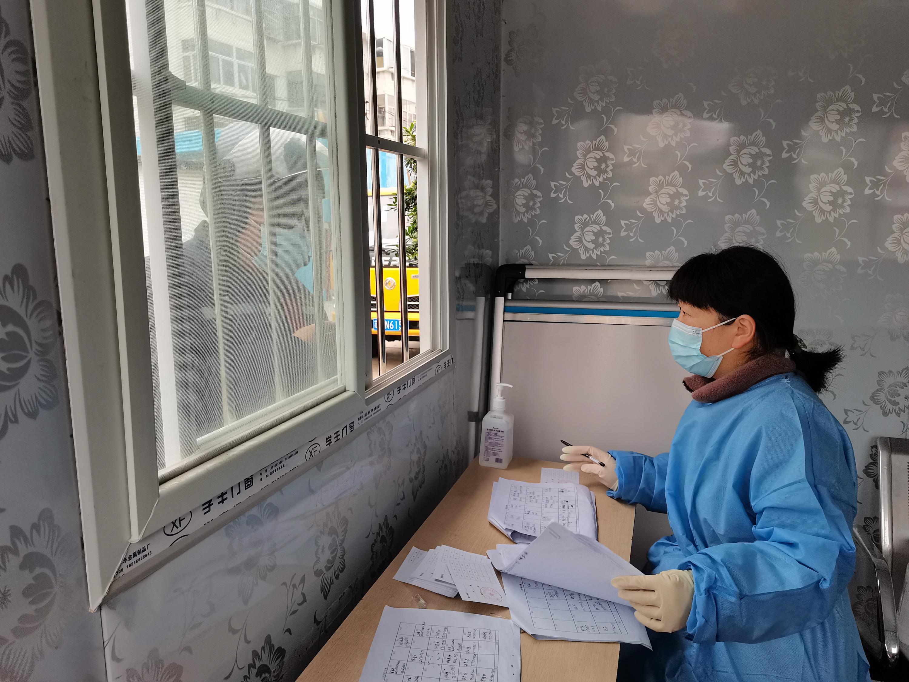 近日,連續(xù)的降雨給防疫一線帶來了考驗(yàn)和難度。11月22日,張艷和孫玲參與區(qū)域核酸檢測(cè)清零行動(dòng),配合西苑社區(qū)工作人員“掃樓”摸排未采樣居民。她們穿著隔離衣和雨衣,穿梭在各個(gè)樓棟間,一層一層的爬樓,挨家挨戶敲門。雨水打濕了她們的頭發(fā),汗水浸濕了她們的衣衫,雙腿如灌了鉛似的沉重卻依舊沒停下腳步!澳茫(qǐng)問您今天做核酸了嗎?”、“您家有幾口人?家里人今天都做完核酸了嗎?”,每敲開一戶房門,她們就要重復(fù)這幾句話,并提醒未做核酸的居民下樓補(bǔ)做核酸。入黨積極分子劉偉在轄區(qū)卡口值守,為居民查驗(yàn)出門證。雖然穿著隔離衣和雨衣,但依然抵擋不住寒冷的風(fēng)雨,戴著密不透氣手套的雙手早已變得僵硬,“您好,請(qǐng)出示您的居民出門證……”雖然冒著風(fēng)雨,但劉偉依然堅(jiān)守在卡口值守的崗位上,沒有絲毫放松。