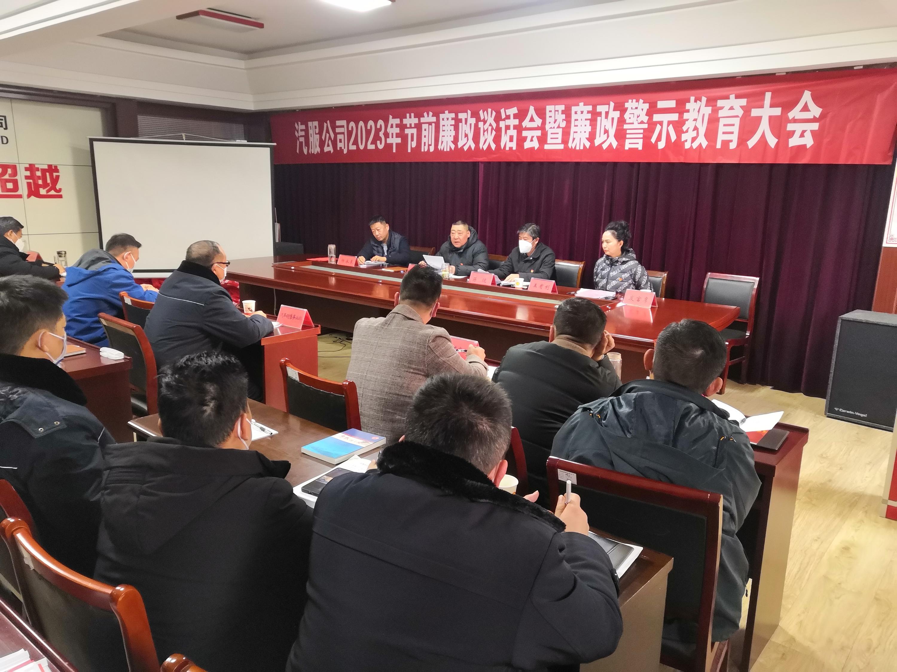 為全面貫徹落實黨的二十大精神,堅定不移深入推進全面從嚴治黨,推動黨風(fēng)廉政各項責(zé)任全面壓實,1月17日下午,汽服公司召開節(jié)前廉政談話會暨廉政警示教育大會,公司領(lǐng)導(dǎo)班子成員、中層干部共40余人參加會議。會議由汽服公司黨委委員、總經(jīng)理助理王有利主持。
