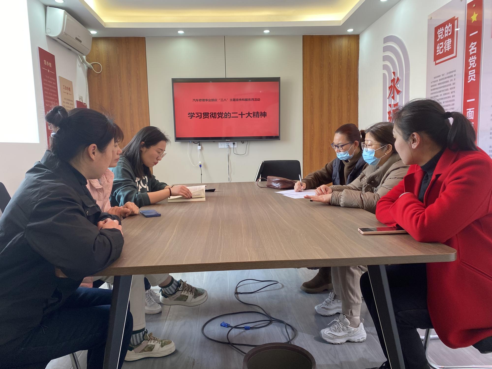 為全面深入學習宣傳貫徹黨的二十大精神,深刻把握報告的核心要義、精神實質和重大部署,3月6日上午,汽車修理事業(yè)部工會組織女職工在鈑噴中心會議室召開慶“三八”集中學習會議,學習宣傳黨的二十大精神。