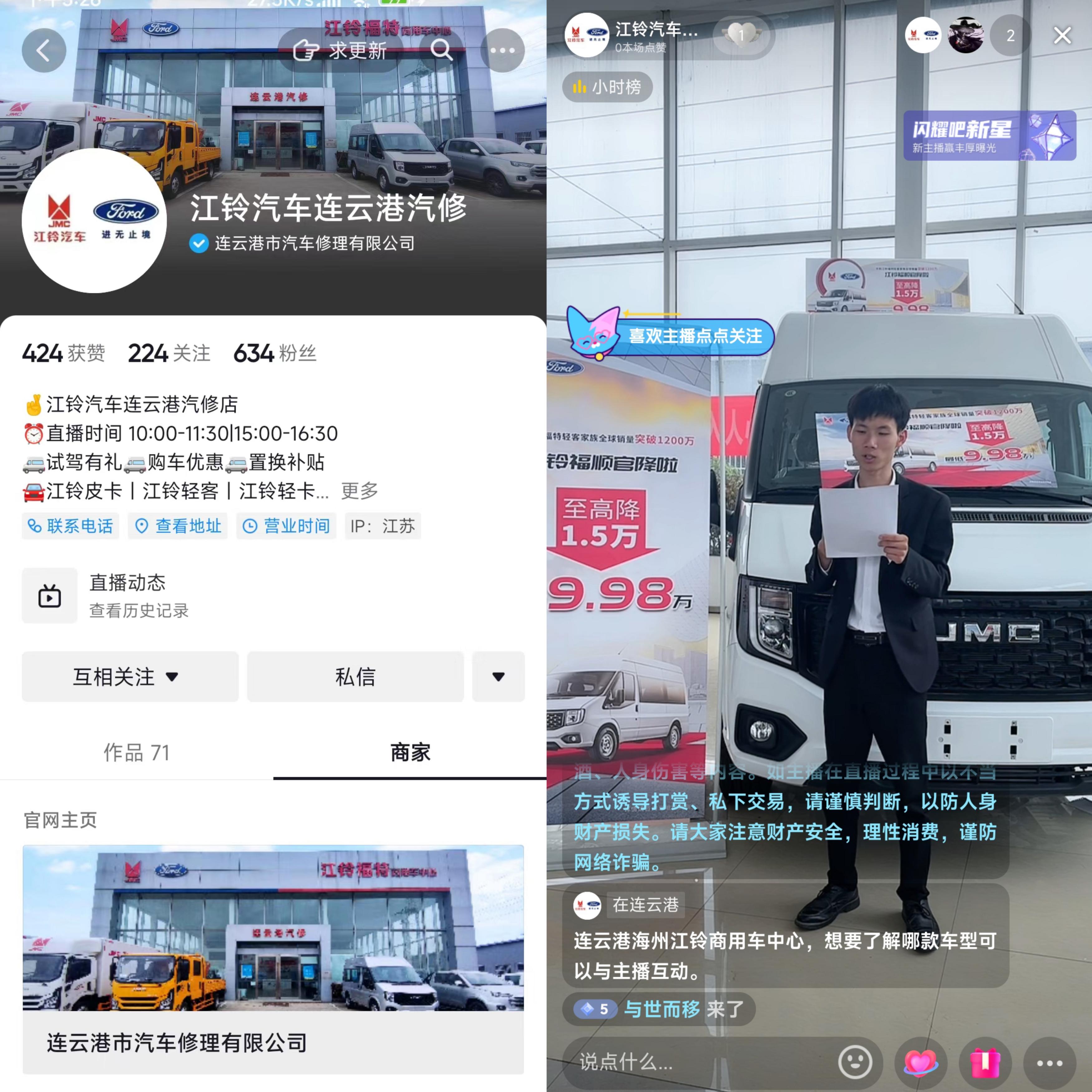 為了給客戶提供更便捷、更好的服務(wù),汽車銷售事業(yè)部江鈴銷售公司開通連云港江鈴官方抖音號(hào),定于每周一至周六,上下午在抖音平臺(tái)進(jìn)行直播。