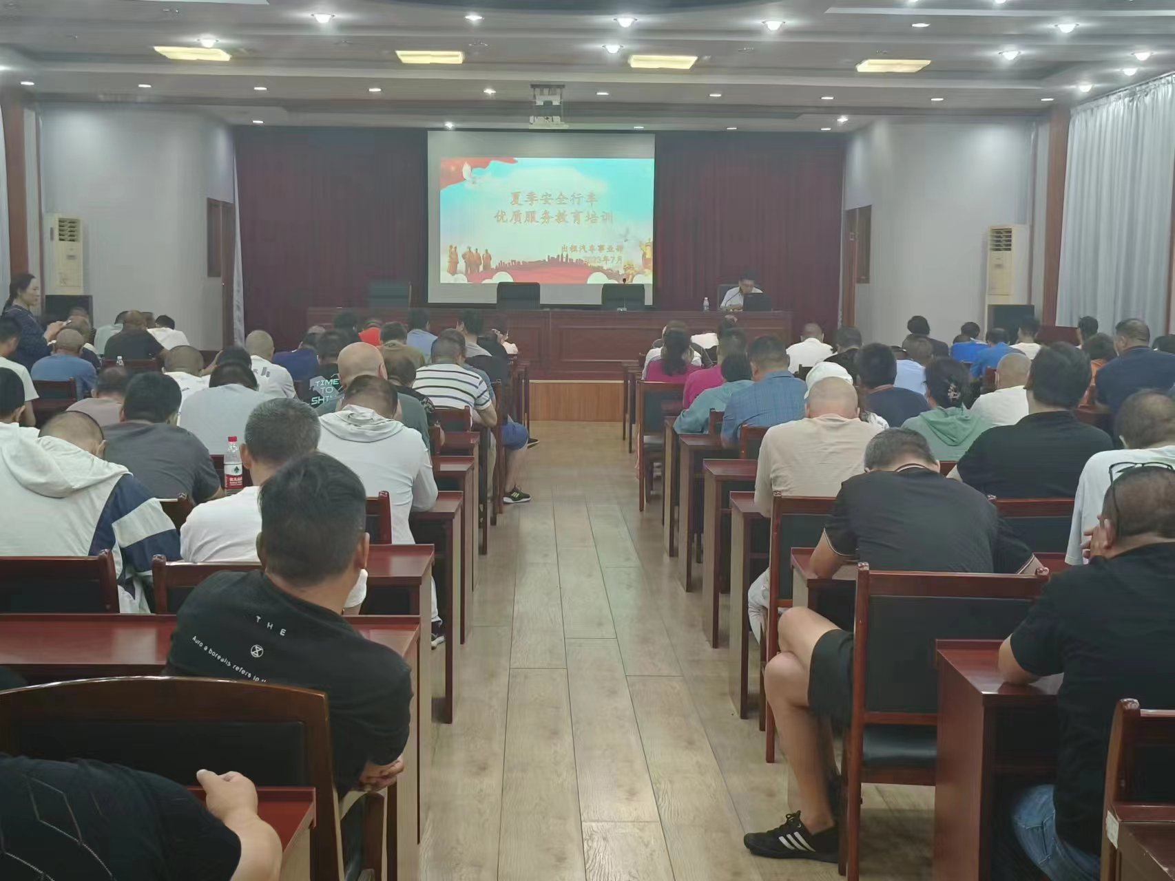 隨著夏季的來臨,高溫和暴雨、臺風(fēng)等強(qiáng)對流天氣增多,是各類事故的高發(fā)期、易發(fā)期,為保證行車安全,加強(qiáng)駕駛員安全行車意識,7月19日,出租汽車事業(yè)部組織駕駛員召開夏季安全行車優(yōu)質(zhì)服務(wù)教育培訓(xùn)。