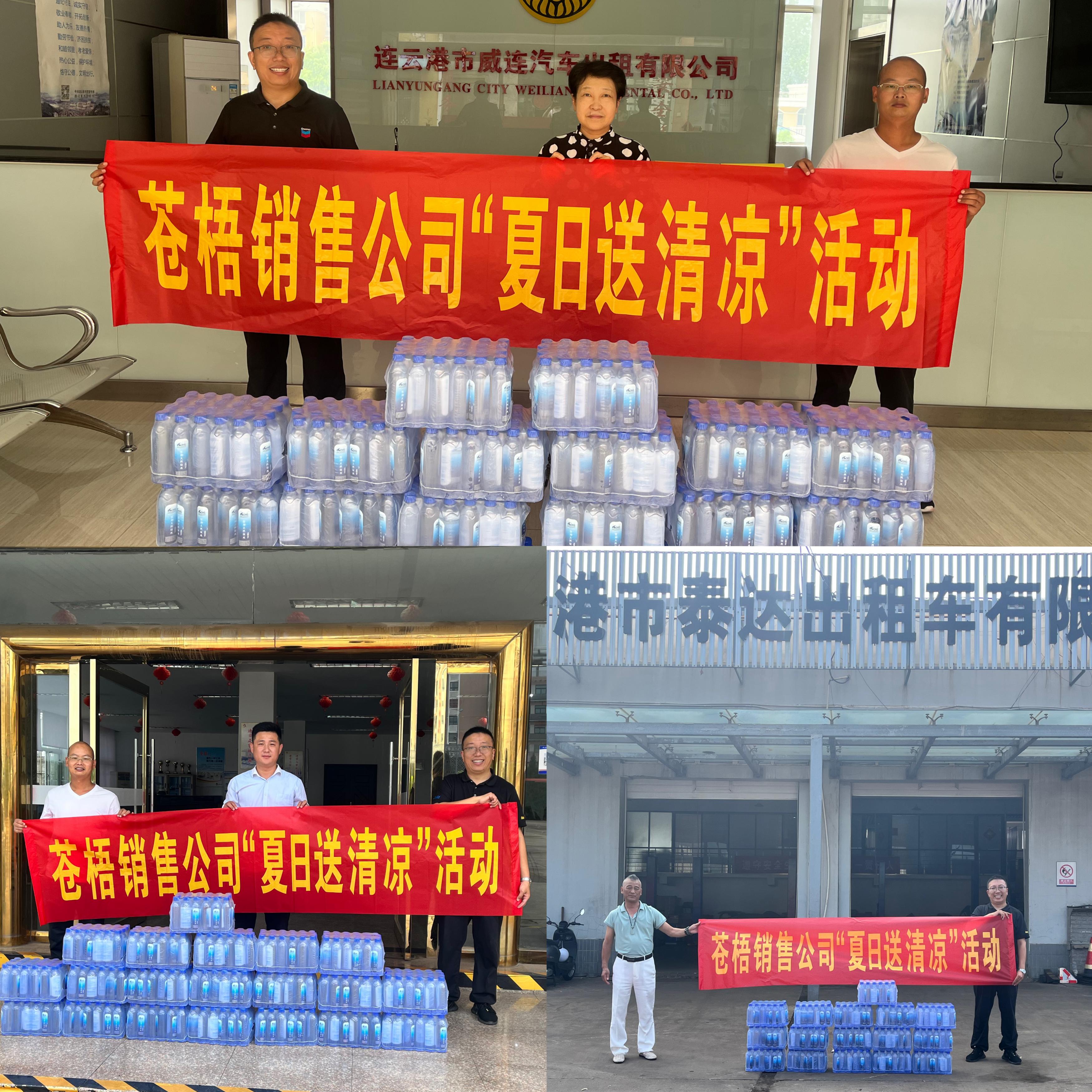 當(dāng)天上午,蒼梧銷售公司的相關(guān)人員一行,先后走訪慰問(wèn)了連云港市威連出租車公司、陽(yáng)光出租車公司、泰達(dá)出租車公司等用車大客戶,為他們送去批量礦泉水,感謝出租車駕駛員們酷暑中依然奮戰(zhàn)在工作崗位上,為港城人民出行提供優(yōu)質(zhì)、舒適、安全的出行服務(wù)。慰問(wèn)中,公司相關(guān)人員與各出租車公司負(fù)責(zé)人進(jìn)行了溝通交流,詳細(xì)了解各出租車公司的需求,并向出租車駕駛員們講解夏季新能源車輛的用車注意事項(xiàng),提出合理性用車建議。各出租車公司的負(fù)責(zé)人對(duì)此次送清涼活動(dòng)紛紛表示感謝,希望彼此能夠更進(jìn)一步深入合作,實(shí)現(xiàn)雙方共贏。