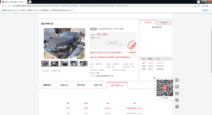 本次租賃事業(yè)部“退役”的13臺車(整體打包拍賣)起拍總價438000元,最終成交總價581500元,溢價143500元 ,溢價率 33 %。車輛拍賣工作圓滿收官,也為后續(xù)處置公車的便捷創(chuàng)新拍賣提供了參考范本。