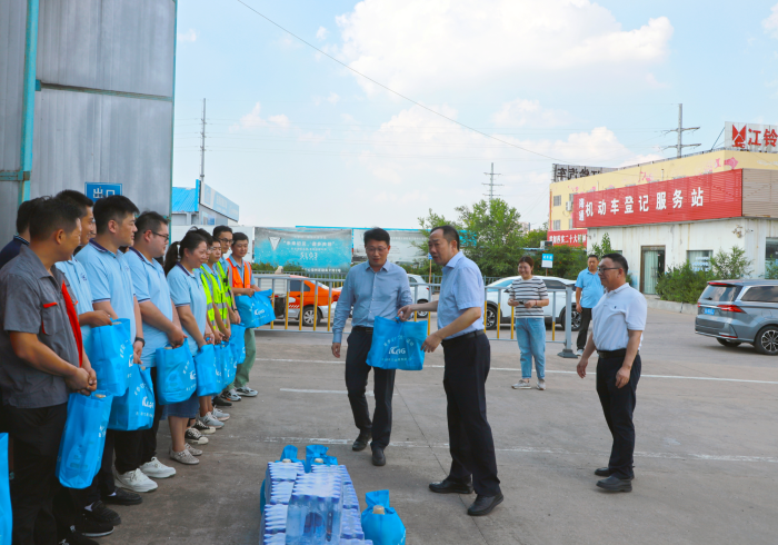 活動(dòng)現(xiàn)場(chǎng),集團(tuán)領(lǐng)導(dǎo)們深入一線,與職工們親切交流,了解他們的工作和生活情況。領(lǐng)導(dǎo)們對(duì)職工在高溫下的堅(jiān)守和努力表示了高度的贊揚(yáng)和感謝。隨后,領(lǐng)導(dǎo)們將精心準(zhǔn)備的清涼物資逐一送到職工的手中。這些清涼物資不僅為職工們帶來(lái)了身體上的舒適,更讓他們感受到了集團(tuán)的關(guān)懷和溫暖。