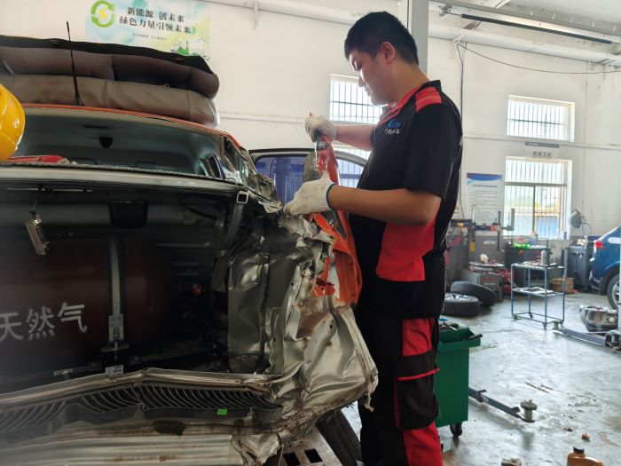 8月的陽(yáng)光炙烤著大地,汽服公司維修車間內(nèi)一片繁忙景象。在車間一角,劉安近師傅正全神貫注修復(fù)一輛受損的汽車外殼。他熟練使用作業(yè)工具,認(rèn)真敲打變形部位,每一個(gè)動(dòng)作都充滿了力量與技巧。汗水濕透了他的工作服,但他的眼神中卻透露出堅(jiān)定和專注。劉安近師傅深知,鈑金作業(yè)不僅是恢復(fù)車身外觀,更是保障車輛安全性能的重要手段。