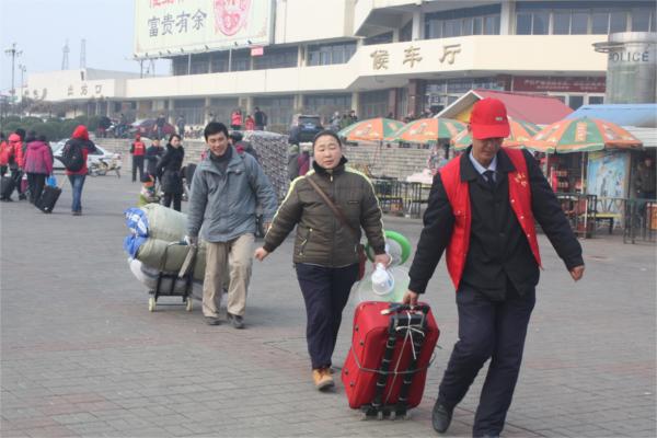 志愿者們從下午3時一直持續(xù)到6時40分才離開,義務(wù)幫扶返城農(nóng)民工110多人次,春運(yùn)第一天他們義務(wù)接送及幫扶120多人次,志愿服務(wù)時間達(dá)600多小時。