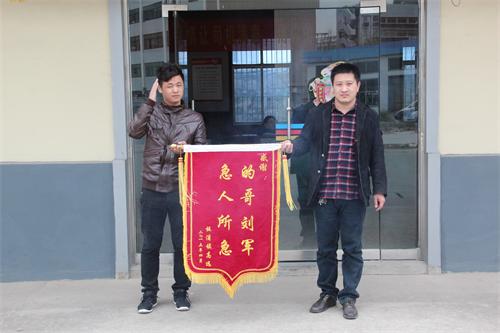 4月20日上午10時(shí)許,連汽出租公司服務(wù)大廳門口響起了一陣‘噼里啪啦’的鞭炮聲,正當(dāng)大家疑惑啥情況的時(shí)候,市民李先生和女婿手里拿著一面鮮紅的寫有“感謝:的哥劉軍 急人所急”的錦旗走進(jìn)了服務(wù)大廳,并向大家說出了事情的原委。