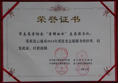 5月14日,借連云港市志愿者協(xié)會(huì)第三次會(huì)員代表大會(huì)召開(kāi)之際,連云港市委宣傳部、市文明辦、團(tuán)市委、市志愿者協(xié)會(huì)對(duì)2014年度優(yōu)秀志愿者、優(yōu)秀志愿服務(wù)組織進(jìn)行表彰,連汽出租公司“雷鋒的士”車隊(duì)榮獲“2014年度優(yōu)秀志愿服務(wù)組織”榮譽(yù)稱號(hào),葛劉園榮獲“2014年度優(yōu)秀志愿者”榮譽(yù)稱號(hào)。