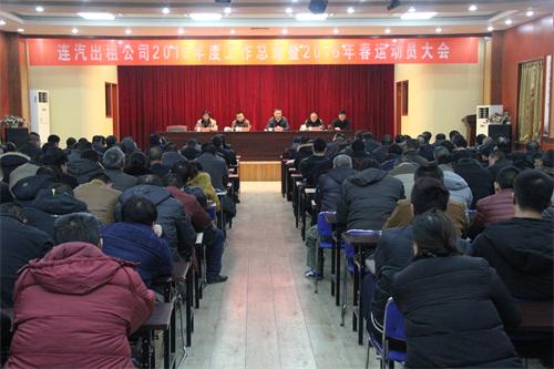 2016年1月17日,連汽出租公司2015年度工作總結(jié)暨2016年春運(yùn)動(dòng)員大會(huì)在公司會(huì)議室隆重召開(kāi)。公司黨政領(lǐng)導(dǎo)班子成員、“雷鋒的士”車隊(duì)隊(duì)員和部分駕駛員代表200余人參加大會(huì)。海通汽車服務(wù)公司總經(jīng)理趙士強(qiáng)、副總經(jīng)理劉超到會(huì)并作重要講話。會(huì)議由分公司經(jīng)理成龍同志主持。