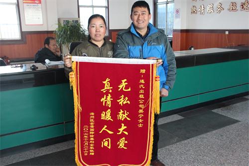 真情暖人間”的錦旗,并提出希望可以親手將錦旗交到出租公司蘇G57586駕駛員樊寧樊大姐手中。