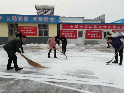 1月28日清晨,黨員干部有的拿著鐵锨鏟雪,有的拿著掃把掃雪,有的推著垃圾車清雪。清掃過程中,雖然寒風(fēng)凜冽,雪花紛飛,但絲毫沒有影響大家掃雪鏟冰的熱情。大家齊心協(xié)力,相互配合,場面熱火朝天。經(jīng)過一上午的辛苦努力,公司門前道路、人行橫道、院內(nèi)場地等重點區(qū)域積雪很快得到了清除,為廣大市民營造了一個良好的出行環(huán)境。此次掃雪行動,充分體現(xiàn)了公司黨員干部的先鋒模范作用,用實際行動踐行了黨的十九大精神,增強了黨員干部的凝聚力和向心力,展示了團結(jié)協(xié)作、無私奉獻的精神風(fēng)貌。
