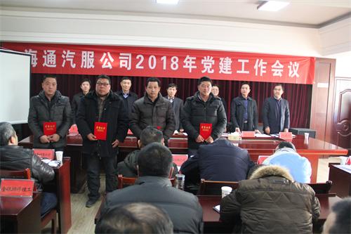1月26日下午,海通汽車服務公司在三樓會議室召開2018年黨建工作會議。公司領導班子、各單位及處室負責人、受表彰先進個人等40余人參加了會議。會議由總經(jīng)理趙士強主持。