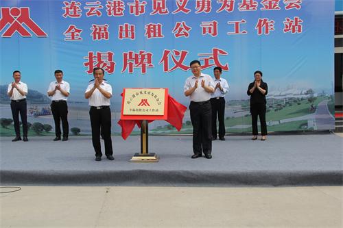 6月4日上午,“連云港市見義勇為基金會(huì)全福出租車公司工作站”在汽服全福出租車公司揭牌成立,這也是江蘇省見義勇為基金會(huì)在非公安系統(tǒng)設(shè)立的第一個(gè)見義勇為基層工作站,也是全省出租汽車行業(yè)首個(gè)“見義勇為工作站”。市見義勇為基金會(huì)理事長(zhǎng)曹玉和、市交通控股集團(tuán)董事長(zhǎng)、黨委書記劉永能、市公安局黨委委員、政治處主任楊德成、市見義勇為基金會(huì)副理事長(zhǎng)張祝好及海通汽服公司相關(guān)領(lǐng)導(dǎo)出席揭牌儀式。