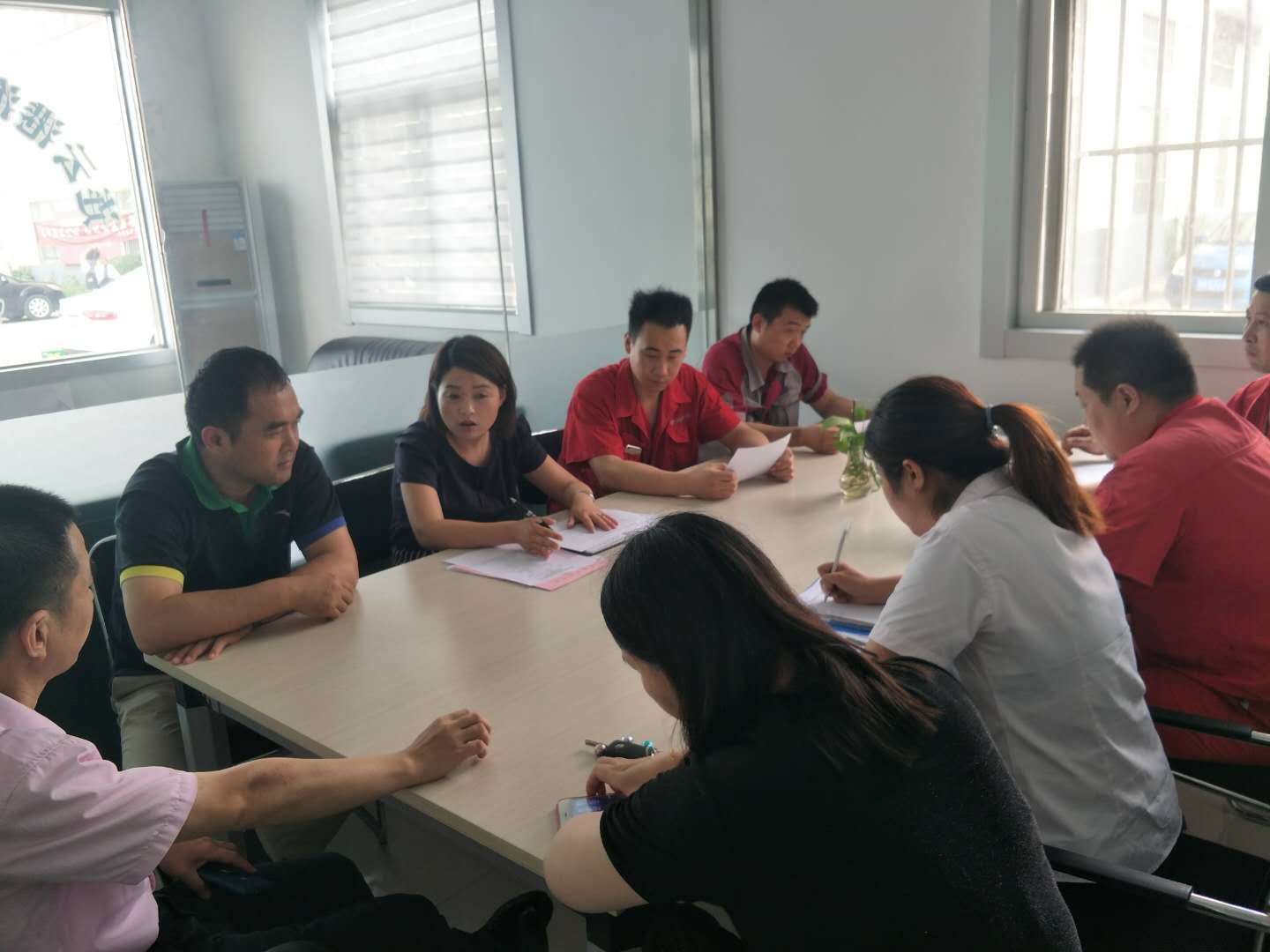租賃公司經(jīng)理李霞按照交通控股集團(tuán)公務(wù)車改革要求及各單位車輛交車時間計劃表,將租賃公司員工分為四個工作小組,并對每個小組的崗位職責(zé)及成員分工進(jìn)行明確。她要求各小組之間要加強交流,在認(rèn)真完成本組工作的同時,主動了解其他小組的需求,及時給與協(xié)助,積極互相配合工作,在大家共同努力下,圓滿完成此次集團(tuán)內(nèi)部公務(wù)車車改工作。